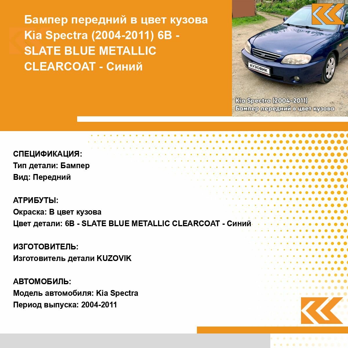 СохранитьБампер передний в цвет кузова Киа Спектра Kia Spectra (2004-2011) 6B - SLATE BLUE METALLIC CLEARCOAT - Синий интересное: