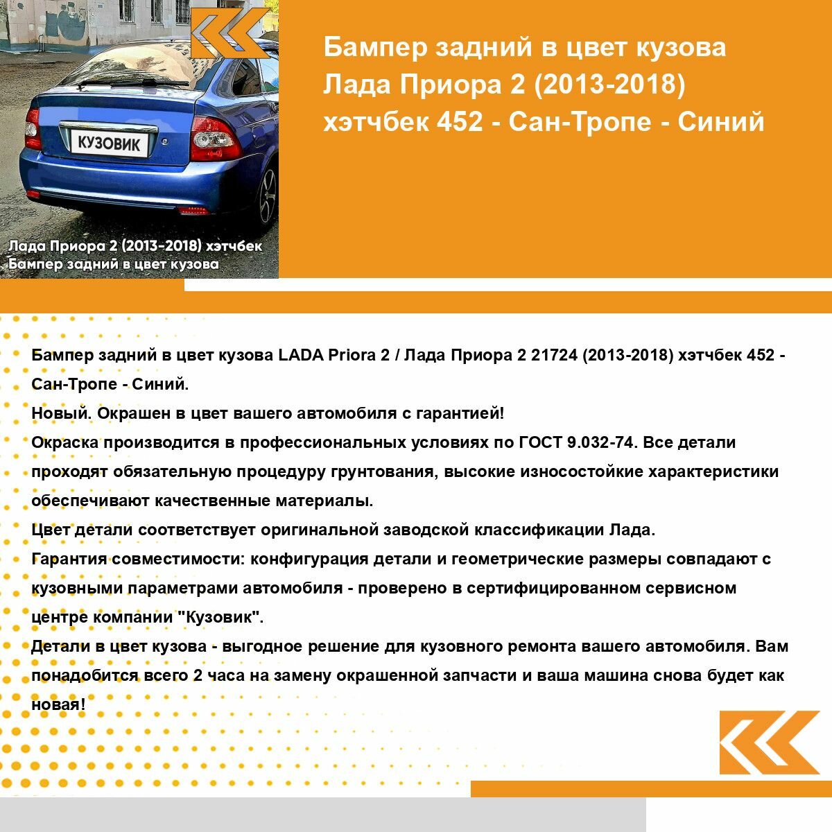 СохранитьБампер задний в цвет кузова Лада Приора 2 хэтчбек 452 - Сан-Тропе - Синий интересное: