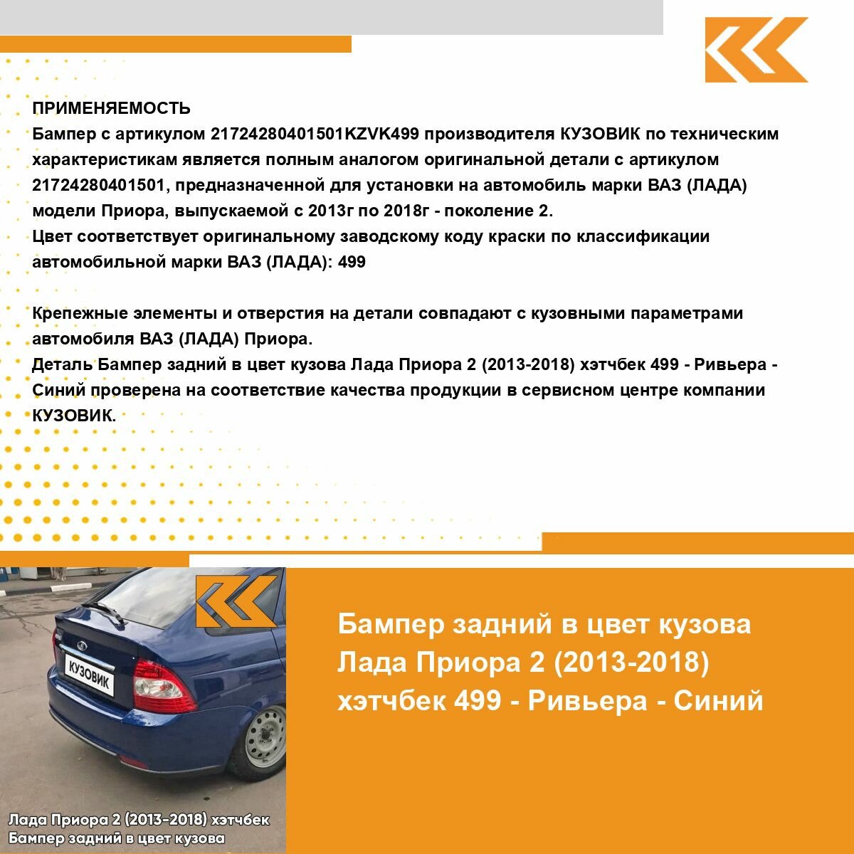 СохранитьБампер задний в цвет кузова Лада Приора 2 хэтчбек 499 - Ривьера - Синий интересное: