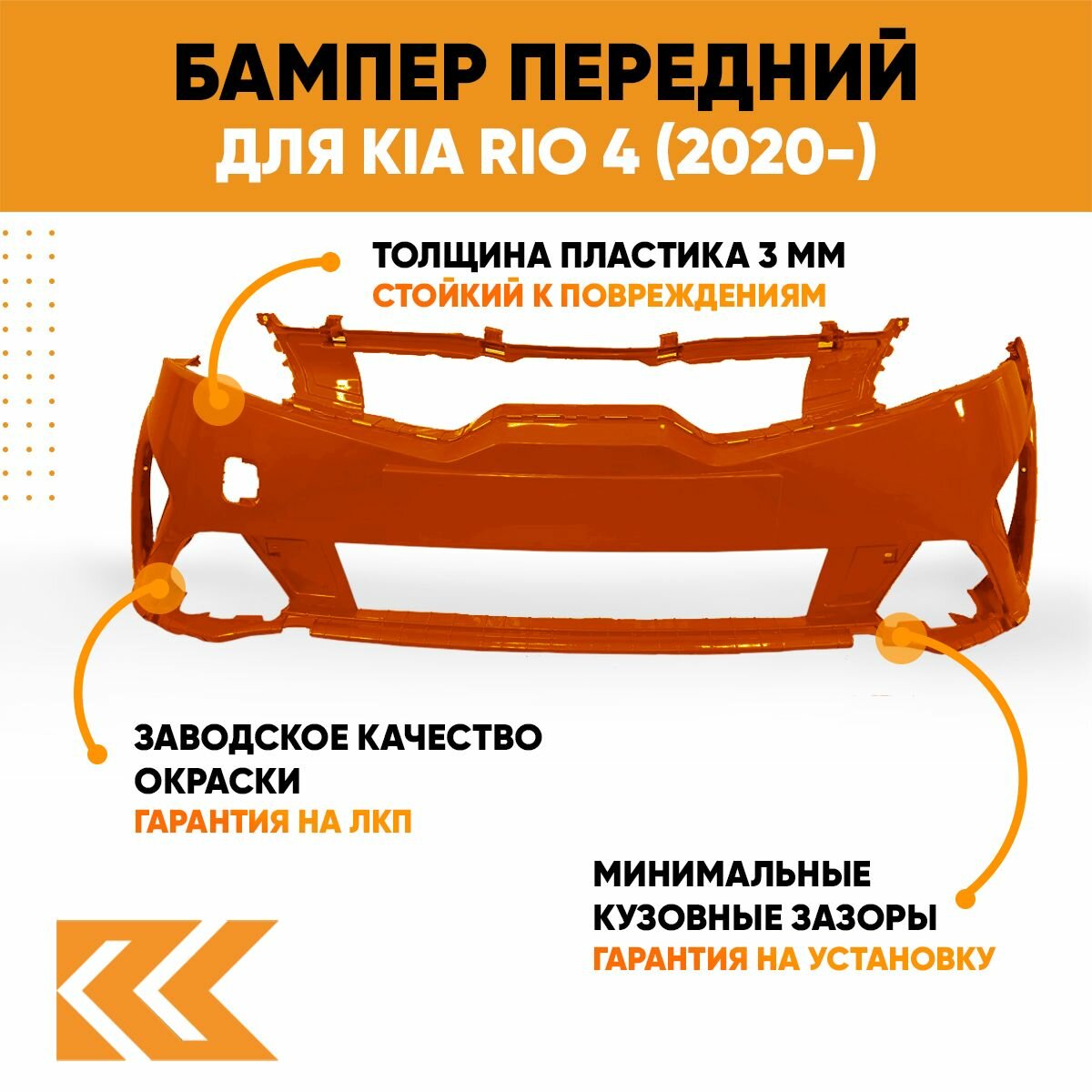| Подробная комплектация | Бампер передний в цвет кузова Kia Rio 4 (2020-) рестайлинг R7R - BURNT ORANGE - Оранжевый |