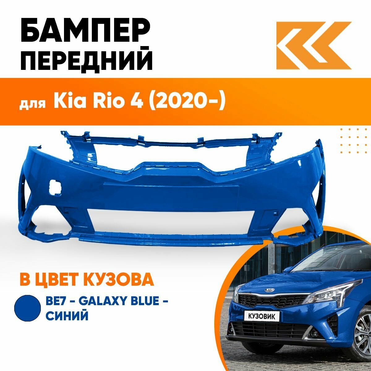 Купить Бампер передний в цвет кузова Kia Rio 4 Киа Рио (2020-) рестайлинг BE7 - GALAXY BLUE - Синий