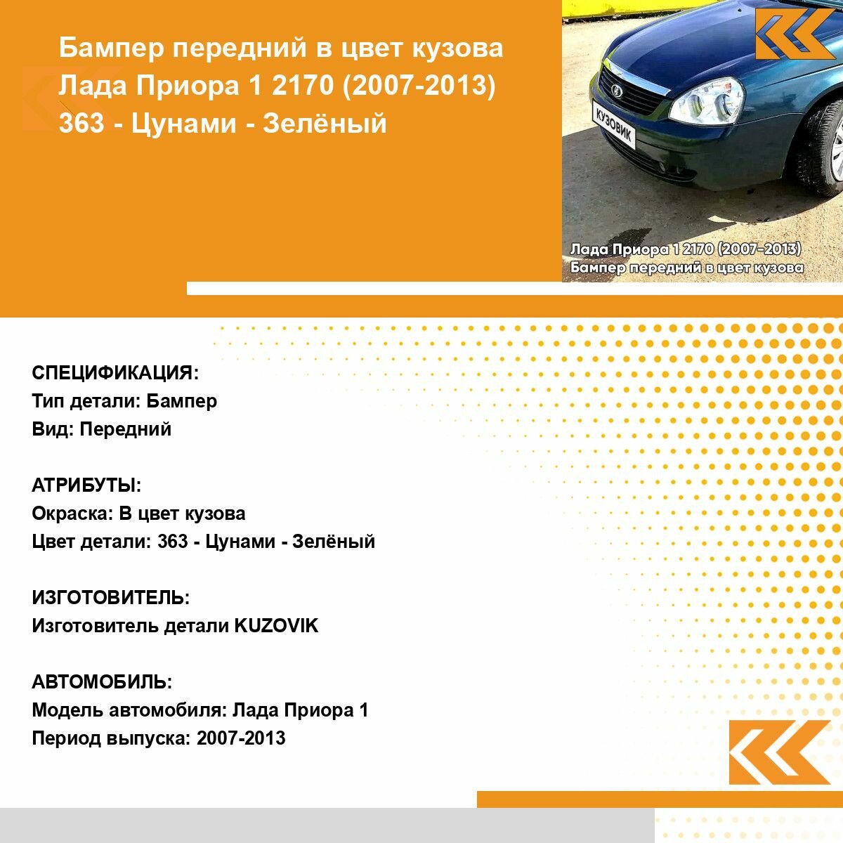 Ниже Вы можете прочитать отзывы на Бампер передний в цвет кузова Лада Приора 1 363 - Цунами - Зеленый, ознакомится с подробными характеристиками, посмотреть интересные обзоры и фотографии на Бампер передний в цвет кузова Лада Приора 1 363 - Цунами - Зеленый.