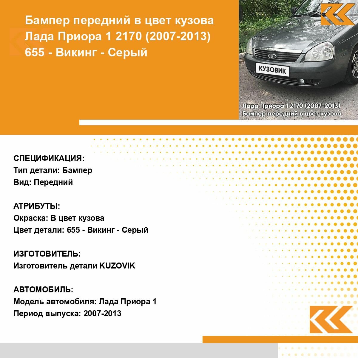 Бампер передний в цвет кузова для Лада Приора 1 2170 (2007-2013) 655 - Викинг - Серый