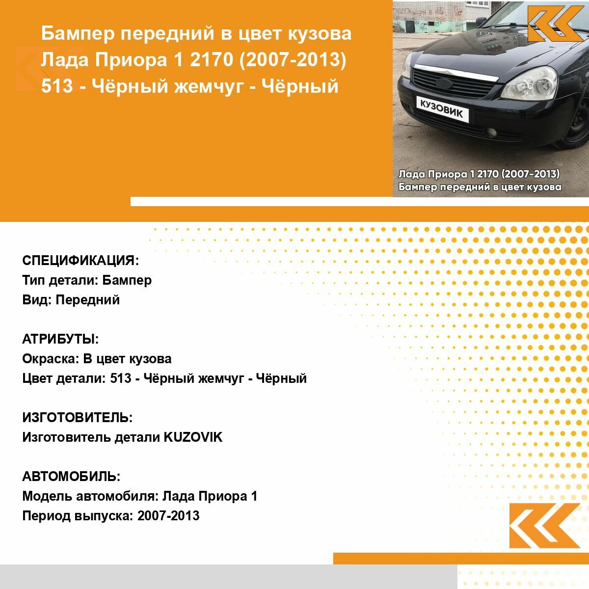 Бампер передний в цвет Лада Приора 1 2170 (2007-2013) 513 - Чёрный жемчуг - Чёрный