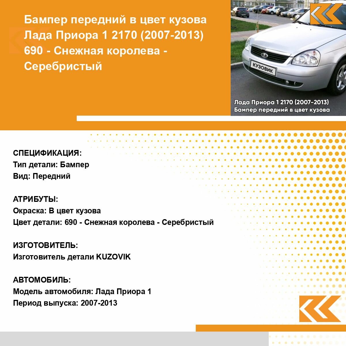 СохранитьБампер передний в цвет кузова Лада Приора 1 690 - Снежная королева - Серебристый интересное: