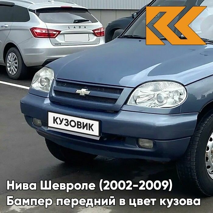 Бампер передний в цвет кузова для Нива Шевроле (2002-2009) полноокрашенный 483 - сириус - Серо-голубой