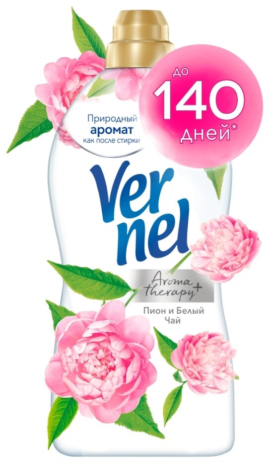 Вернель Концентрированный кондиционер-ополаскиватель для белья Ароматерапия+ Пион и белый чай, 0.87 л, 0.9 кг