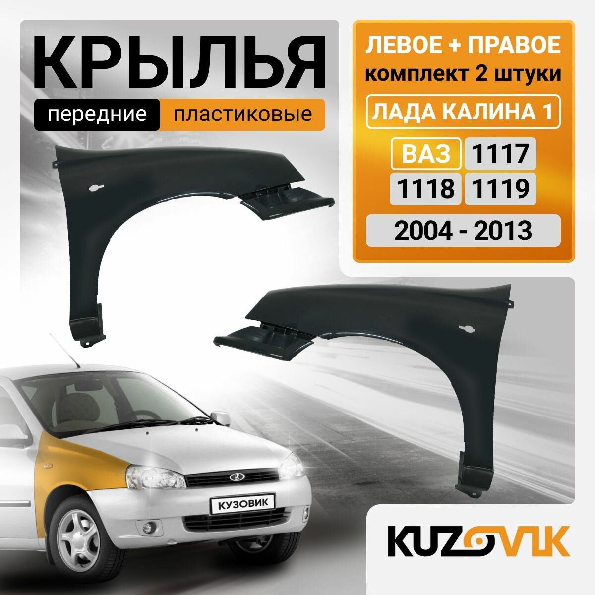 | Подробная комплектация | Крылья передние пластиковые Лада Калина 1 (2004-2013) ВАЗ 1117 1118 1119 комплект 2 штуки левое + правое , новое заводское качество под покраску Lada Kalina |