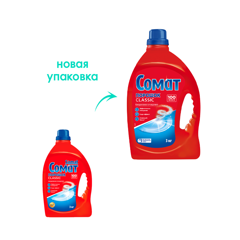 Порошок для посудомоечных машин Сомат Classic Лимон и Лайм 100 моек, 3кг