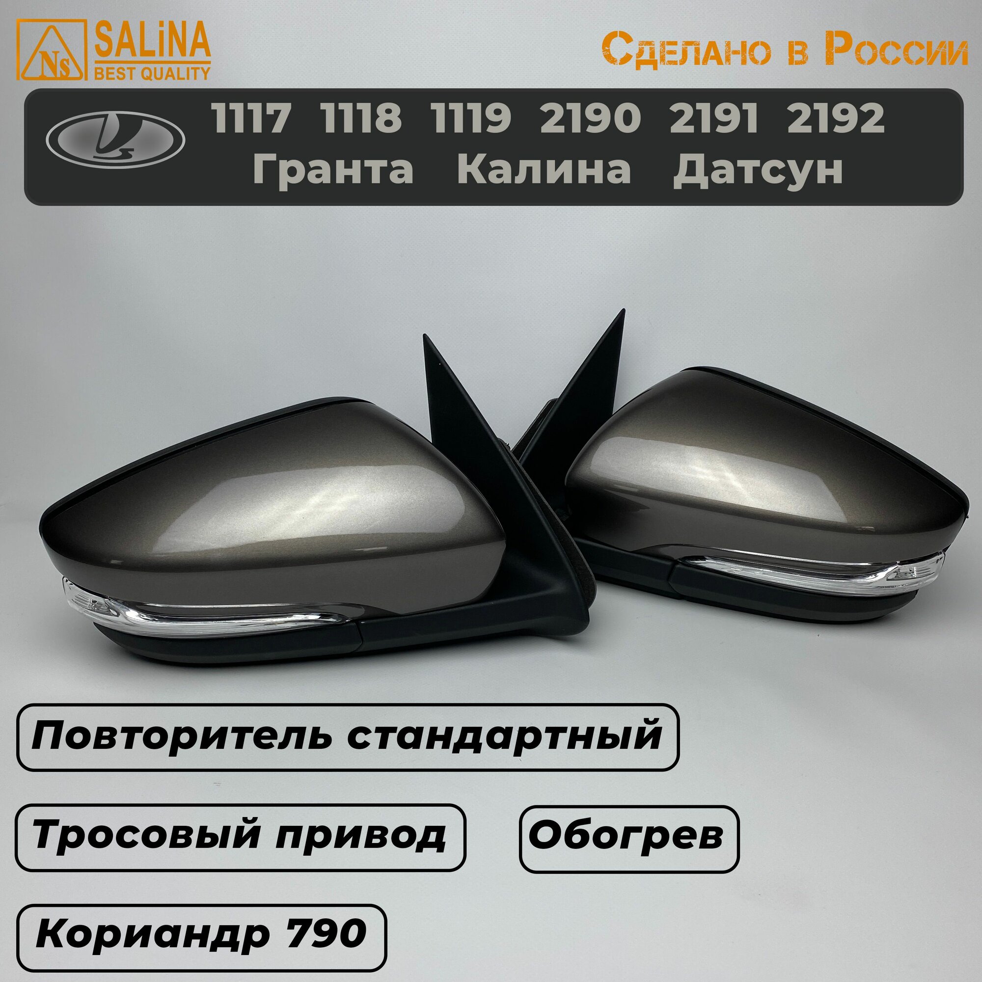 Комплект зеркал с тросовым приводом и повторителем Стандарт на Ваз 2191, 2190, 1117, 1118, 1119, Гранта FL, Калина, Датсун (Кориандр 790)