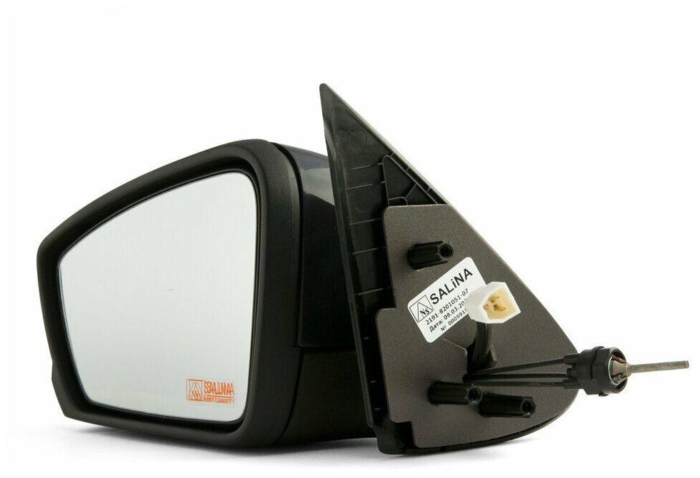 Наружное зеркало заднего вида на LADA Granta с тросовым приводом и обогревом зеркального элемента, повторителем поворота, неокрашеное. Salina
