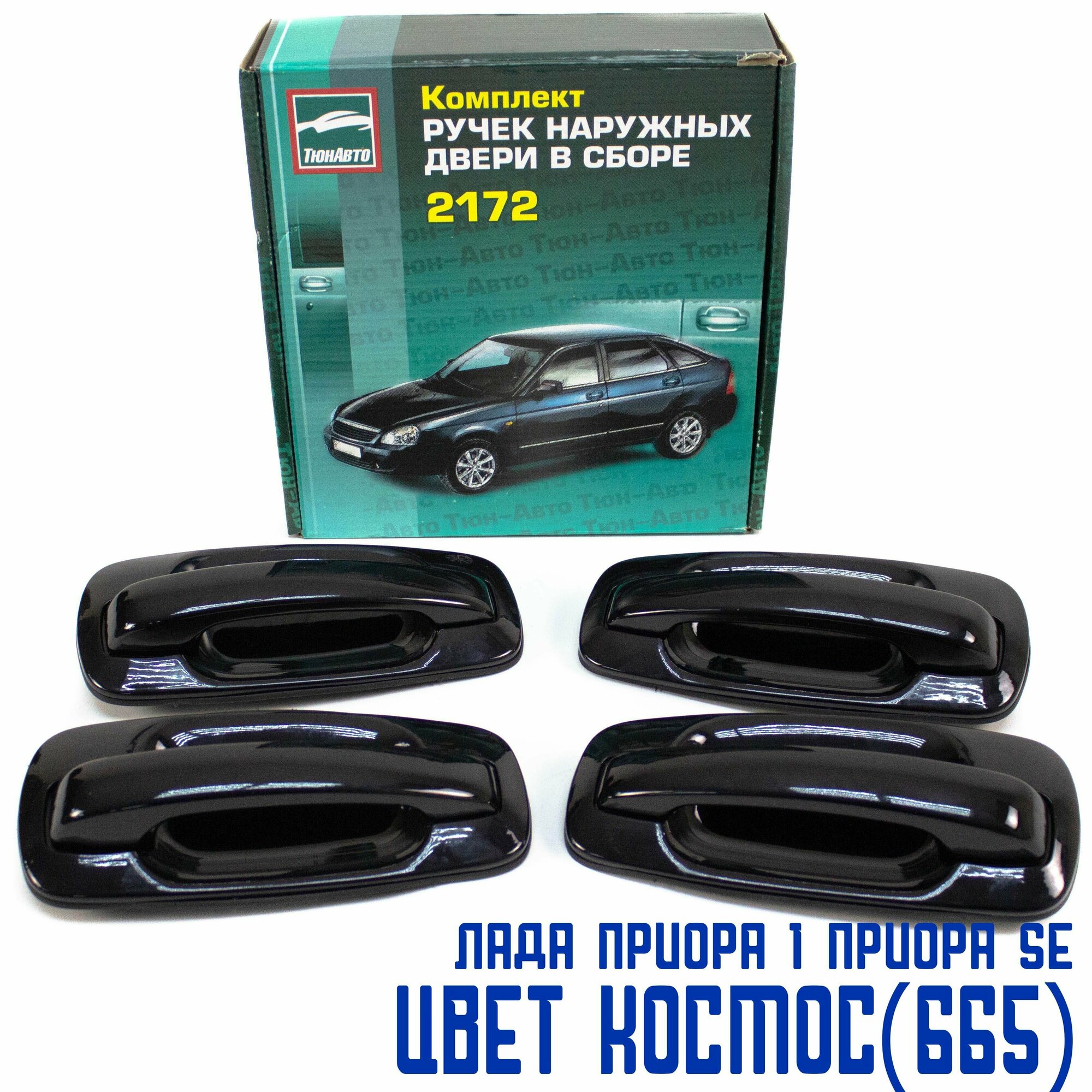 Купить Ручки дверей Приора, Приора 2, ВАЗ 2110, 2111-12 передние задние евроручки наружные на левую, правую сторону, евро ручки дверные Тюн-Авто окрашенные в цвет Космос (665) комплект 4шт.