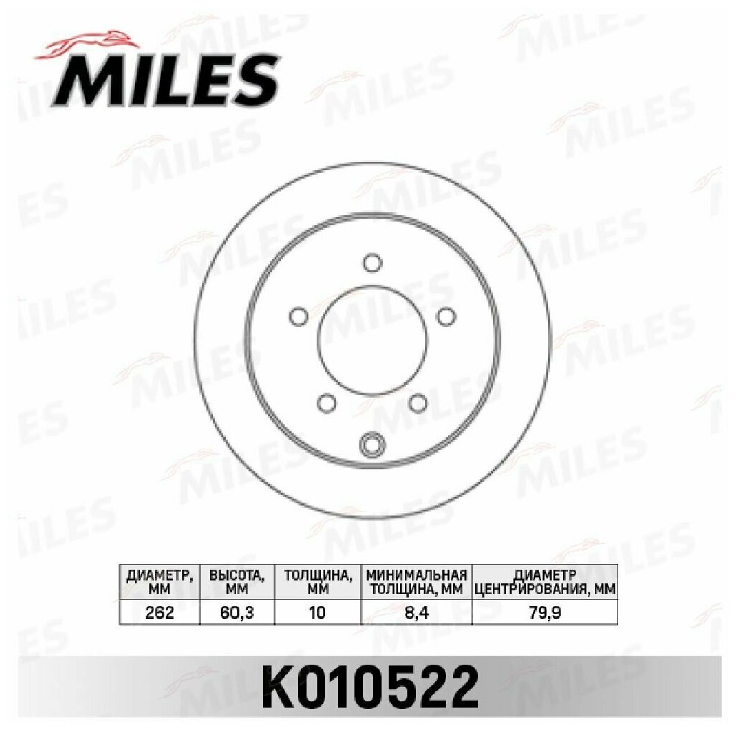 Диск тормозной задний MILES K010522 для а/м Mitsubishi Lancer X, Lancer X Sportback, 262х10 мм. интересное: