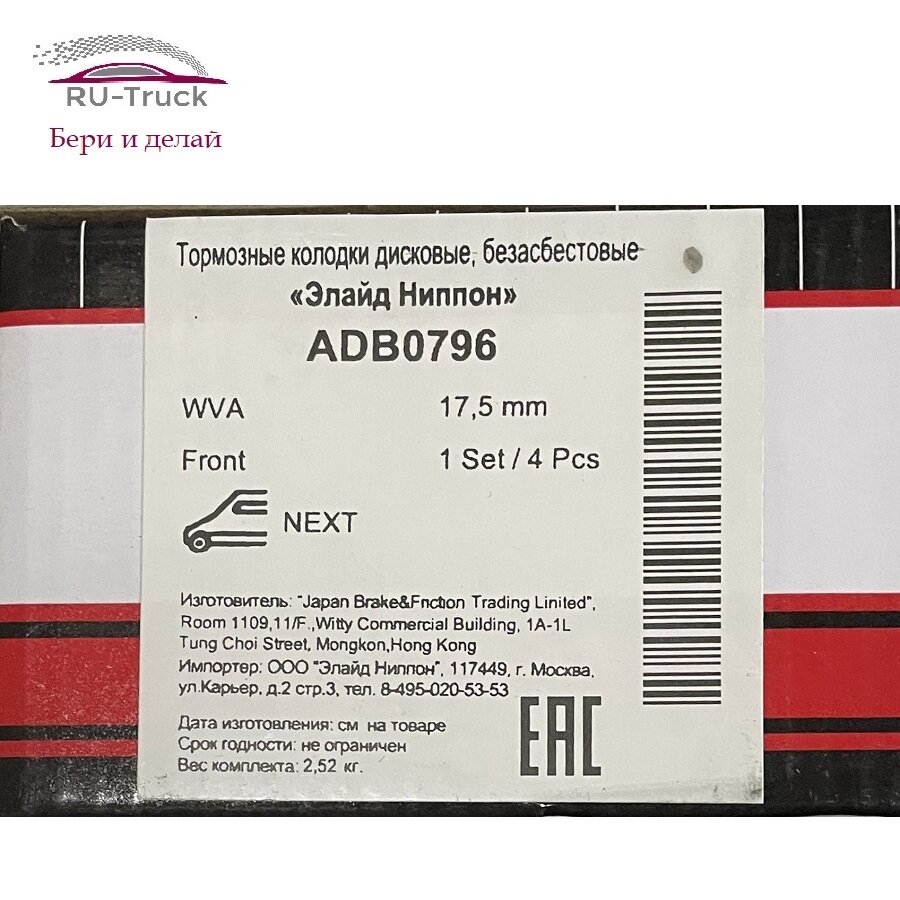 Тормозные колодки передние, ГАЗель NEXT 4шт, ADB0796, ALLIED NIPPON интересное: