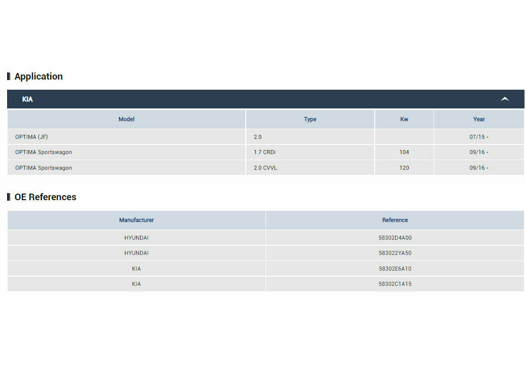 | Соответствующие коды OE | 58302-2YA50 , 58302-C1A15 , 58302-D7A00 |