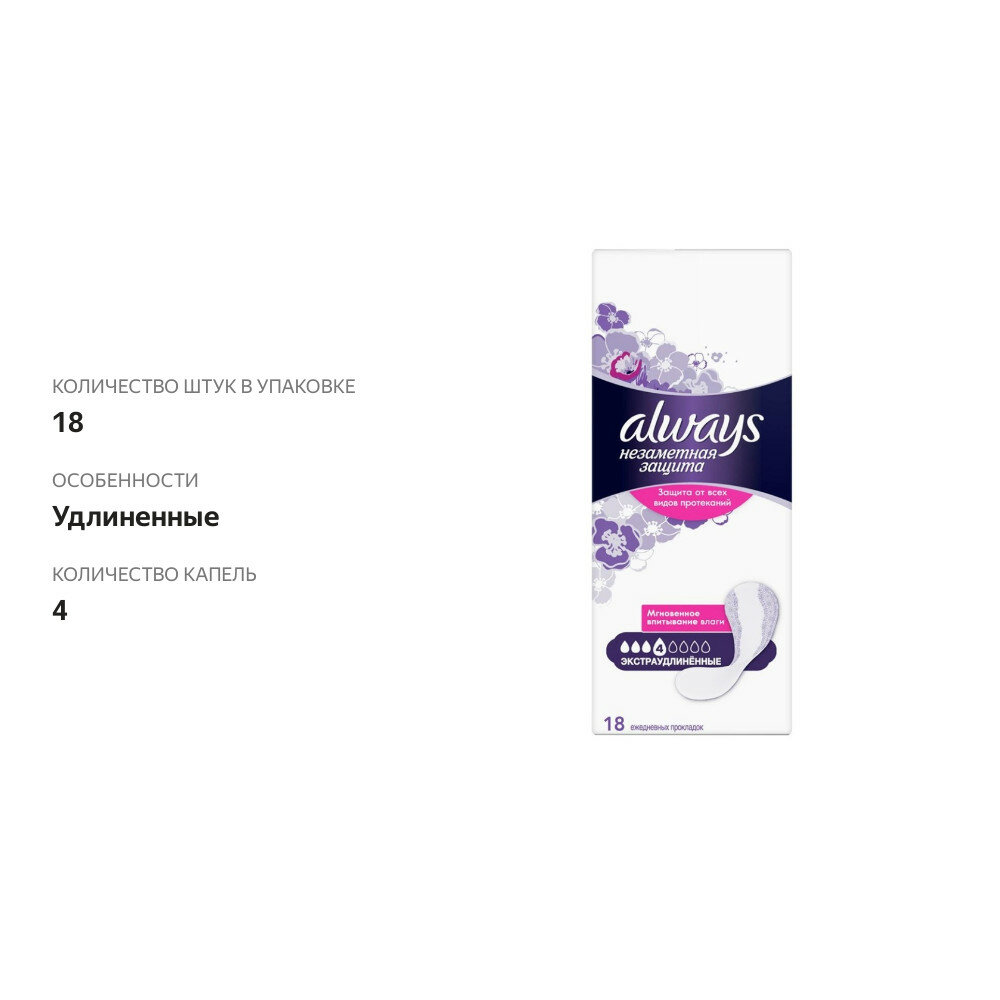 Женские гигиенические ароматизированные Прокладки на каждый день Always Незаметная Защита Экстраудлиненные, 18 шт. интересное: