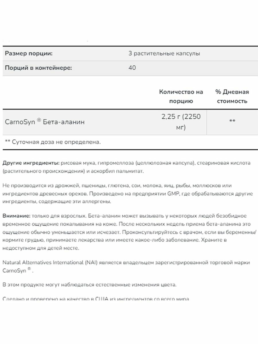 СохранитьNOW Beta Alanine 750 мг 120 капсул интересное: