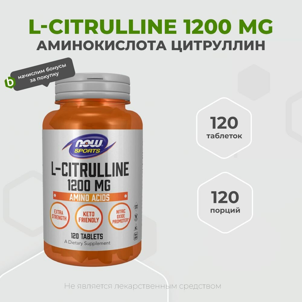 Аминокислота NOW L-Citrulline 1200 мг, нейтральный, 120 шт.