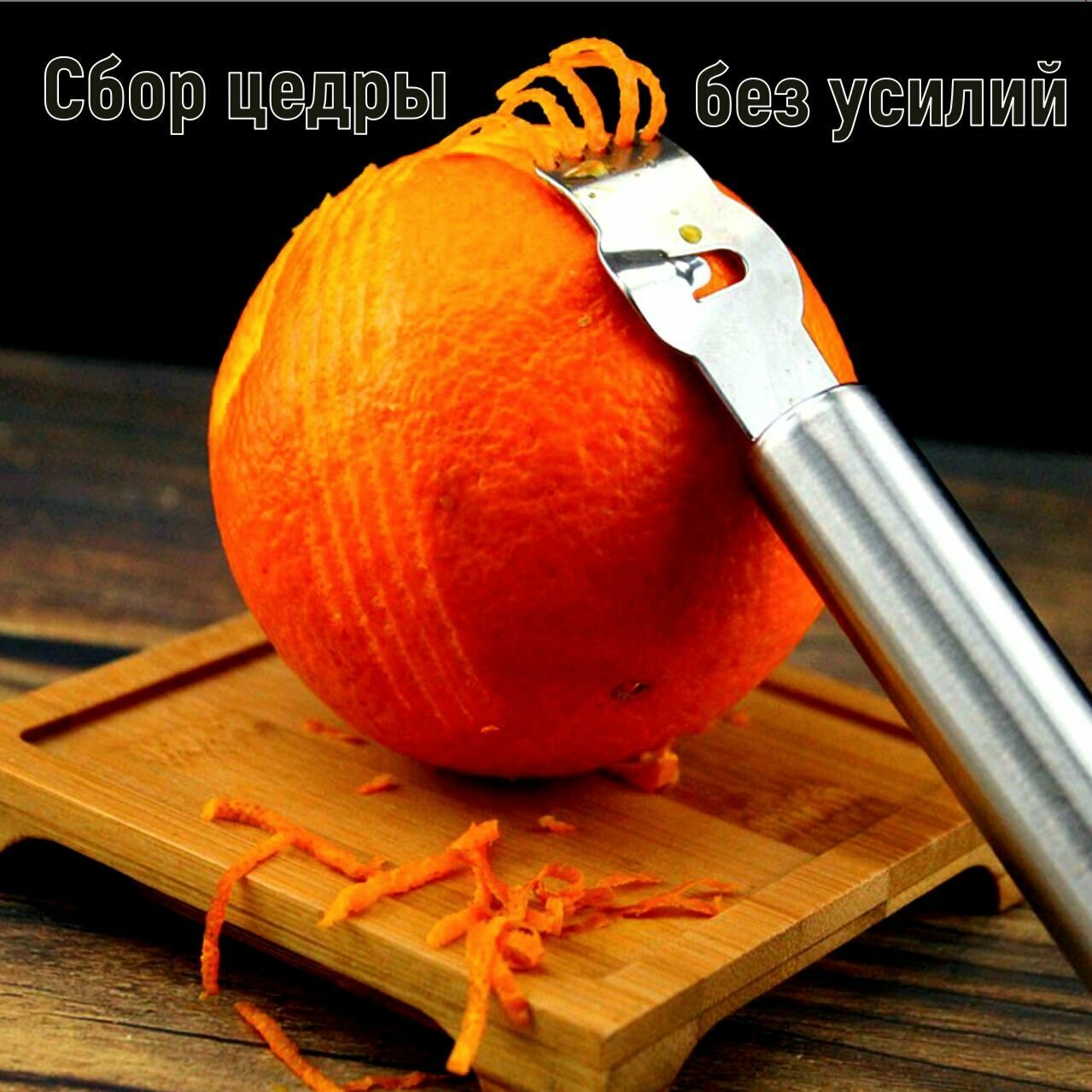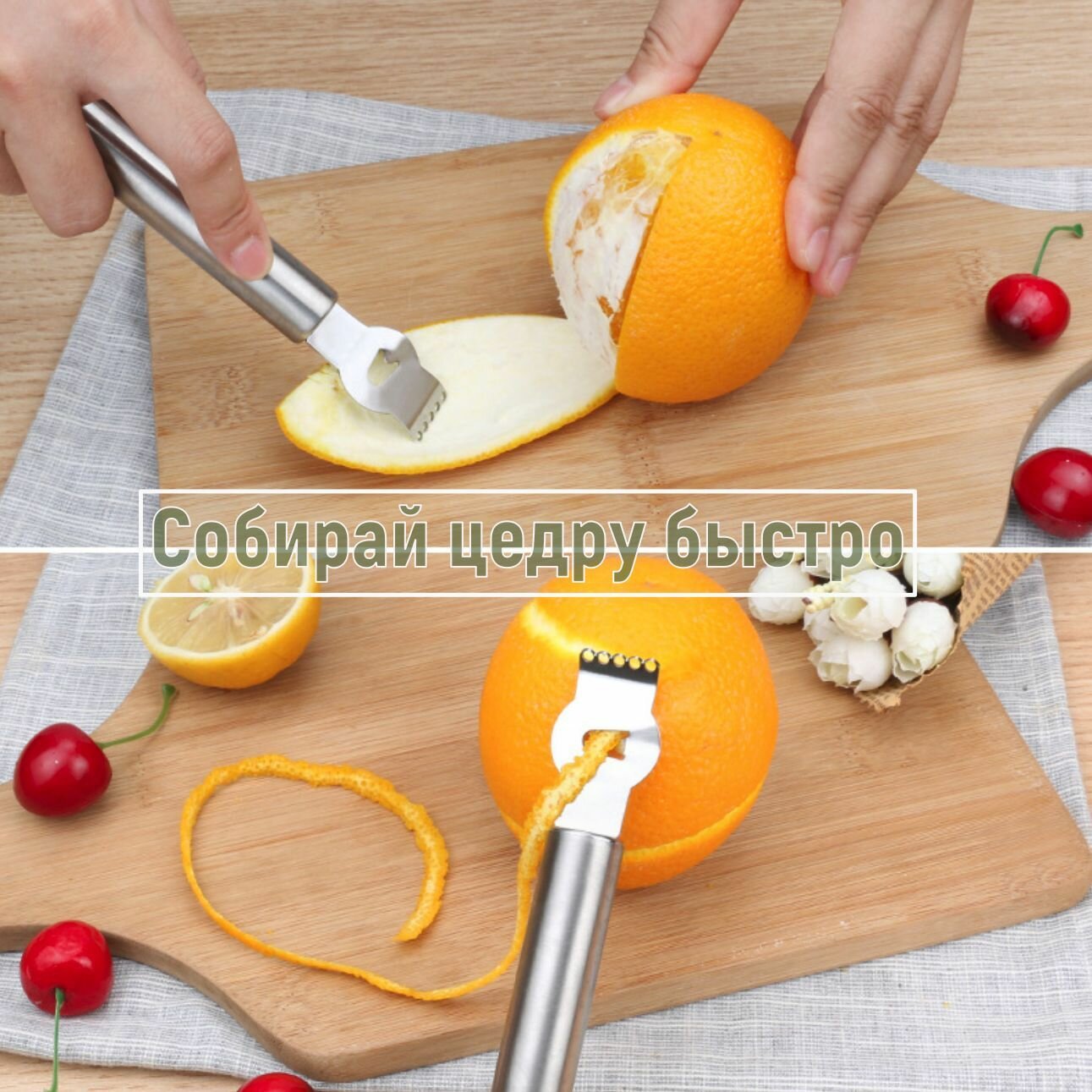 Нож для цедры Garmoni Rqe для легкой и аккуратной сборки цедры, фигурной вырезки и декора цитрусовых лимонов и апельсинов, из нержавеющей стали. интересное:
