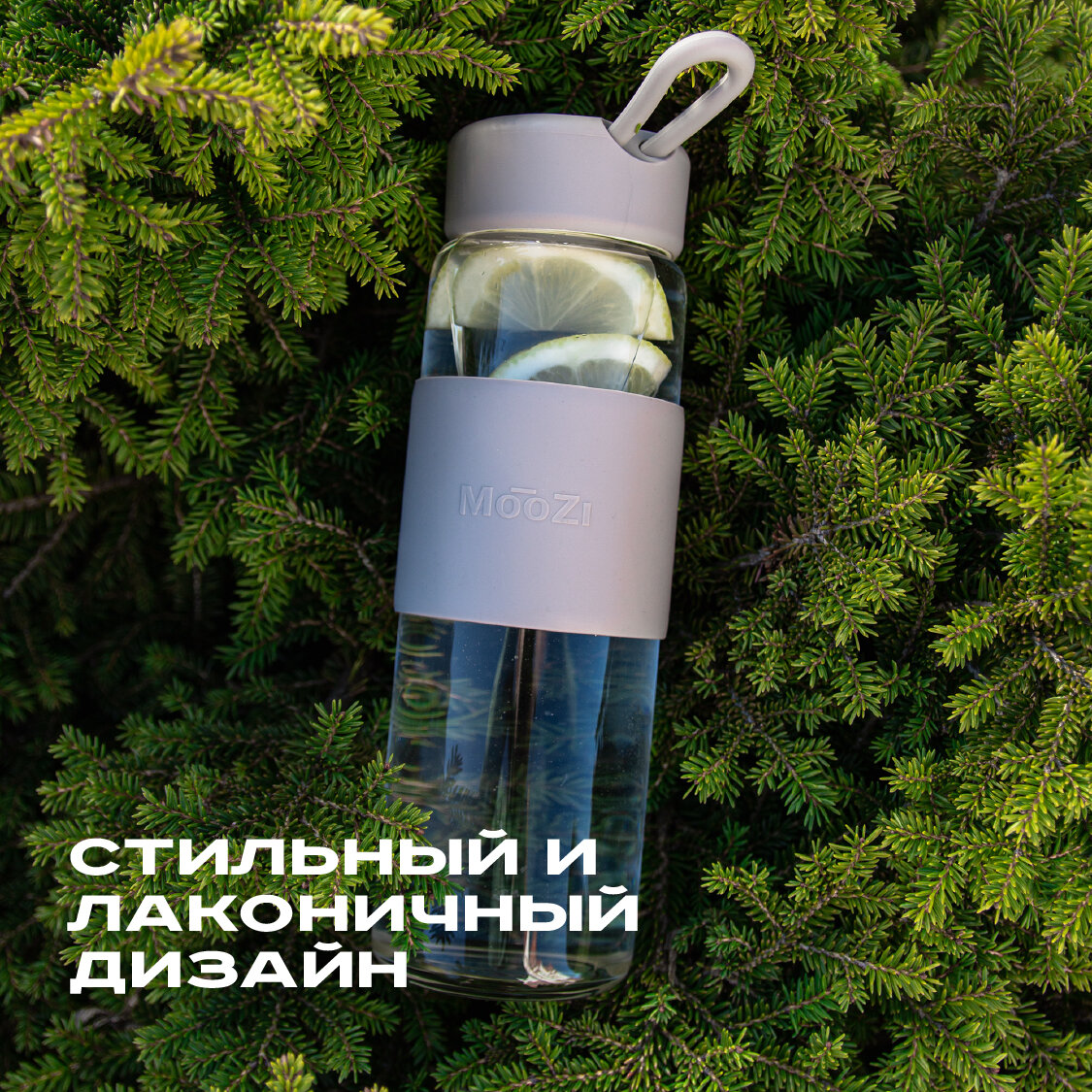 Стеклянная бутылка MOOZI, для воды, 520мл, серая, с герметичной крышкой