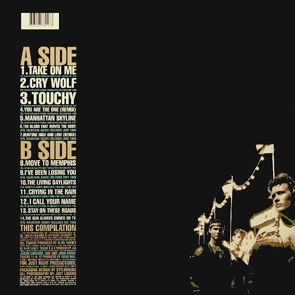 | Треклист | A1. Take On Me A2. Cry Wolf A3. Touchy! A4. You Are The One (Remix) A5. Manhattan Skyline A6. The Blood That Moves The Body A7. Hunting High And Low (Remix) B1. Move To Memphis B2. I've Been Losing You B3. The Living Daylights (Single Version) B4. Crying in the Rain B5. I Call Your Name B6. Stay On These Roads B7. The Sun Always Shines On T.V. |