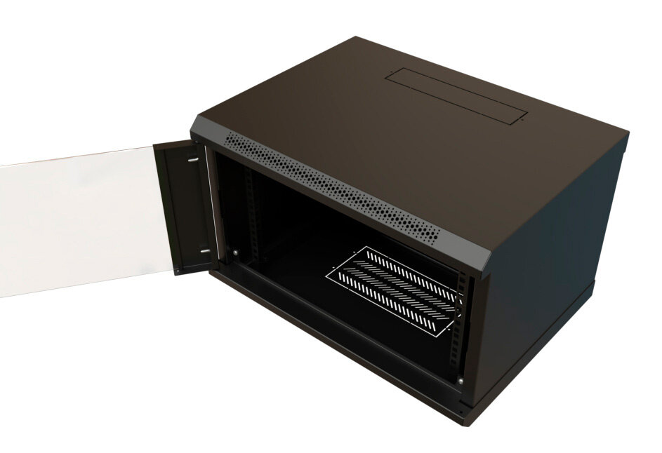 Шкаф коммутационный WRline (WR-TW-0645-GP-RAL9004) настенный 6U 600x450мм пер.дв.стекл 2 бок.пан. на