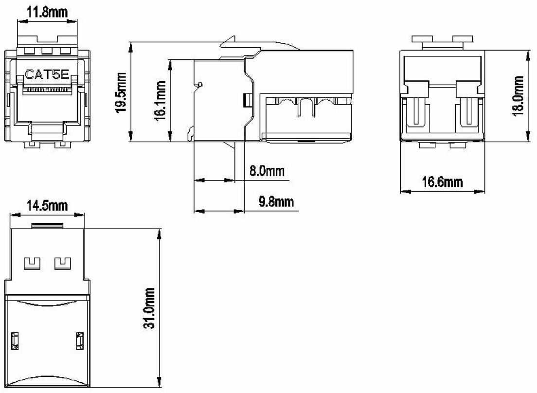 Hyperline KJ9-8P8C-C5e-90-BK Вставка Keystone Jack RJ-45(8P8C), категория 5e, черная интересное: