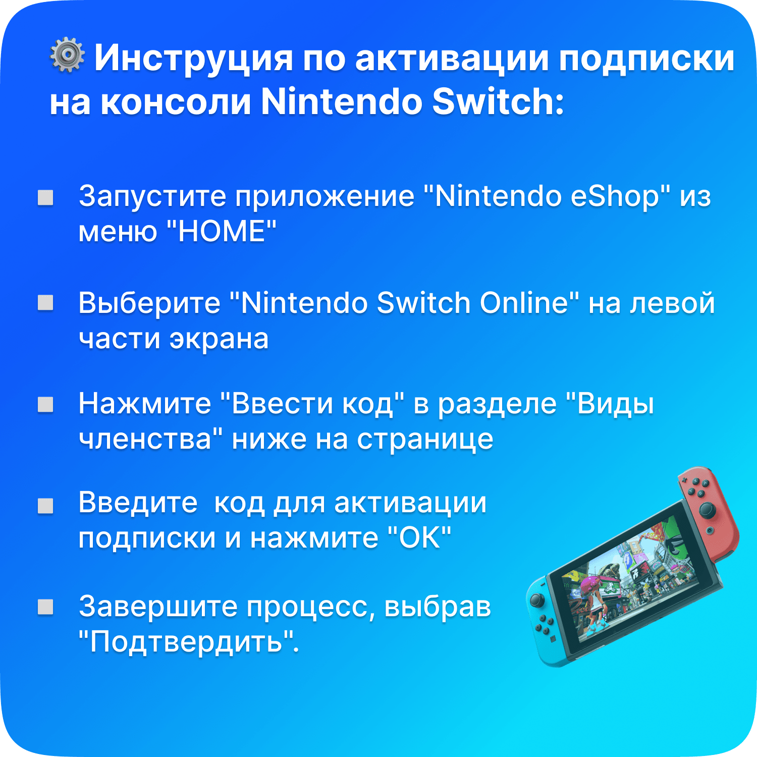 | Сервис активации | Nintendo Switch Online, Nintendo eShop, PlayStation Store |