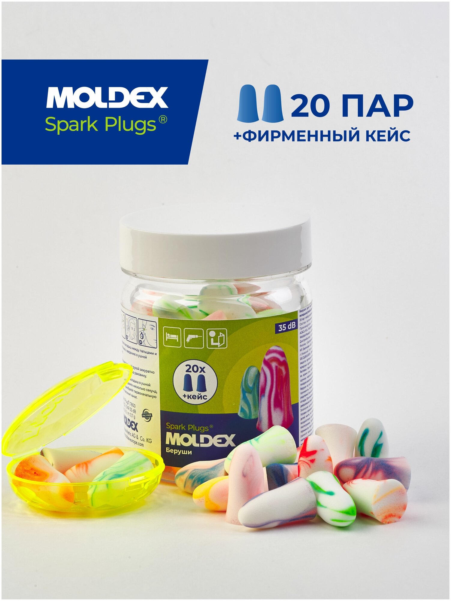 Беруши для сна (противошумные вкладыши) Moldex Spark Plugs, 20 пар с кейсом интересное: