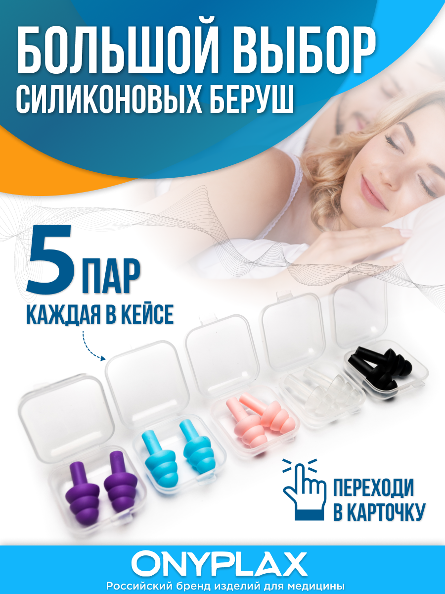 Беруши для сна Onyplax, многоразовые, для плавания, силиконовые, 10 шт, противошумные, 5 цветов. интересное: