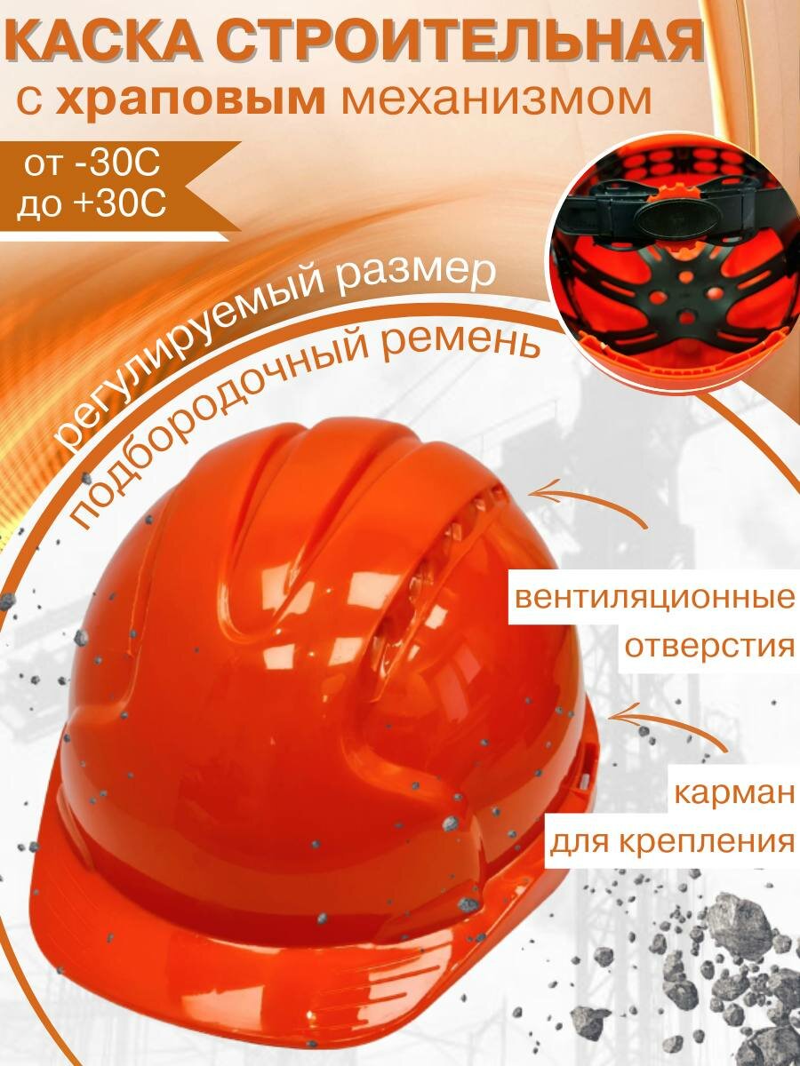 Каска строительная с храповым механизмом оранжевая интересное: