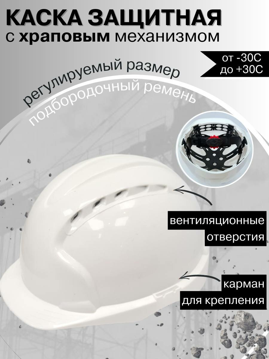Каска строительная с храповым механизмом белая интересное: