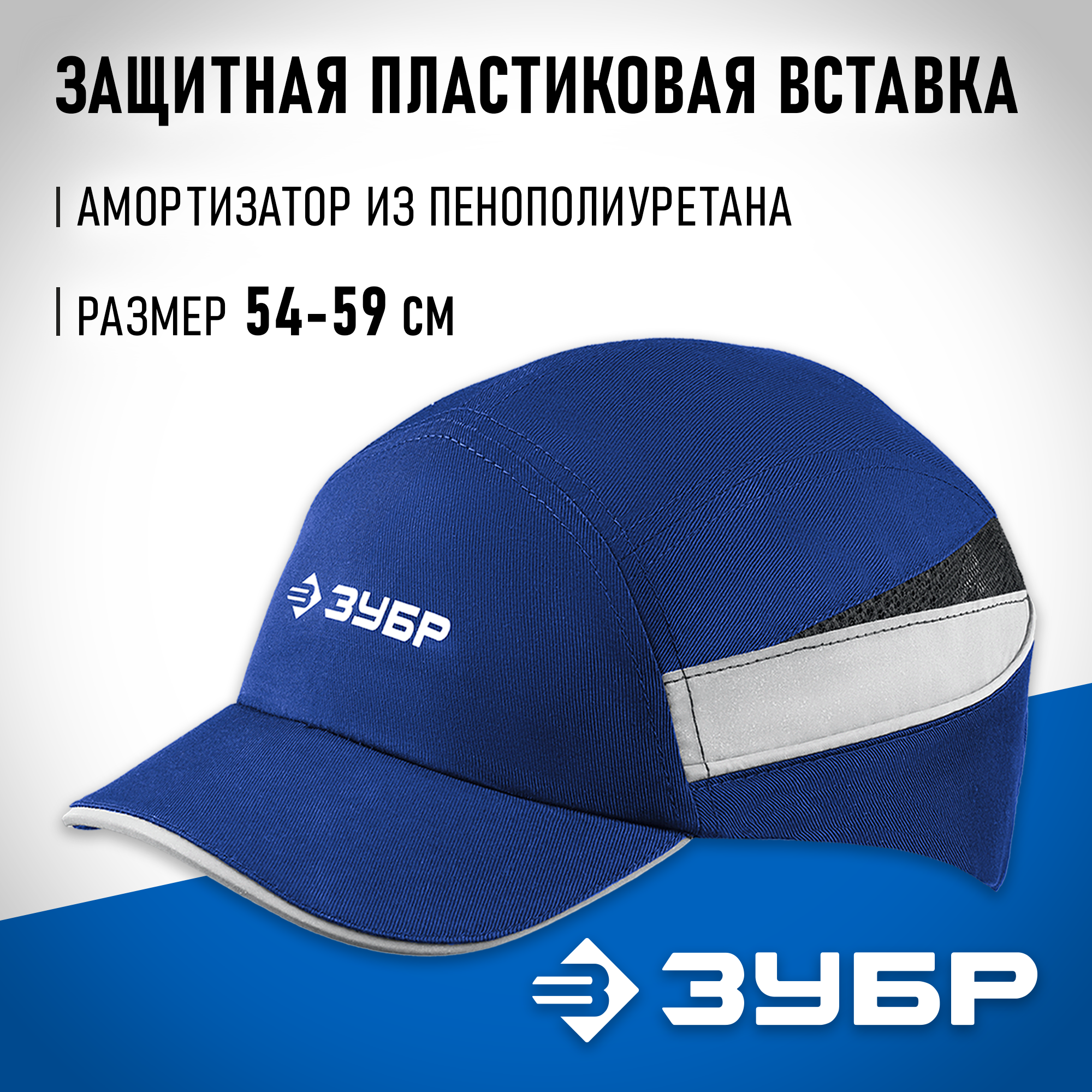Каскетка защитная, синяя, ударопрочный корпус, козырёк укороченный, светоотражающие вставки, легионер, 55мм, размер от 54 до 59см, ЗУБР