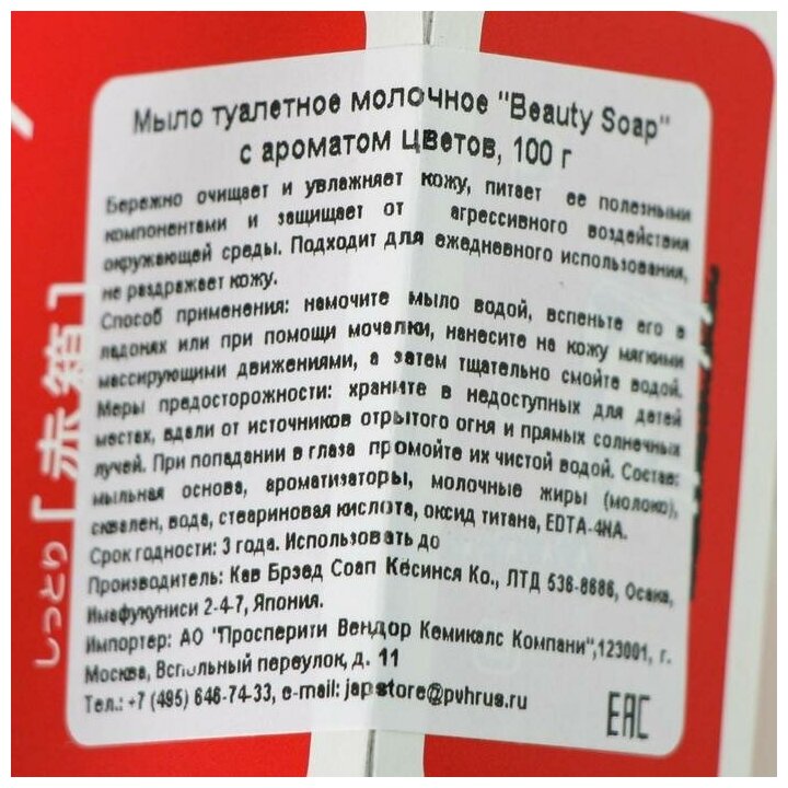 Мыло туалетное молочное "Beauty Soap" с ароматом цветов, 100 г