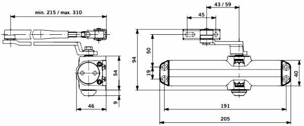 Доводчик дверной Dorma TS Compakt EN 2/3/4, с рычажной тягой, серый .