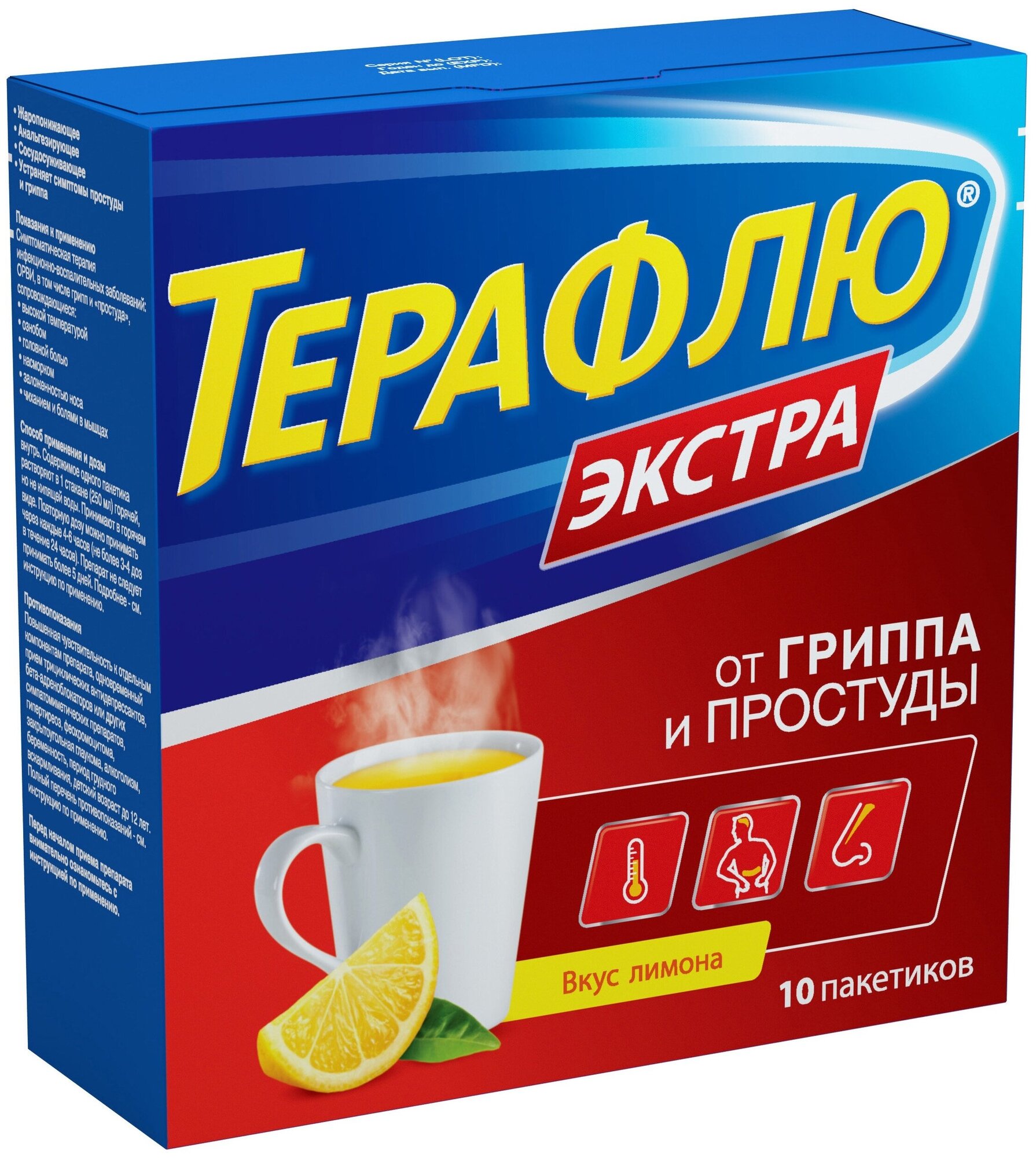 ТераФлю Экстра от гриппа и простуды, порошок со вкусом лимона порошок д/приг раствора д/приема внутрь лимон пак 10 шт