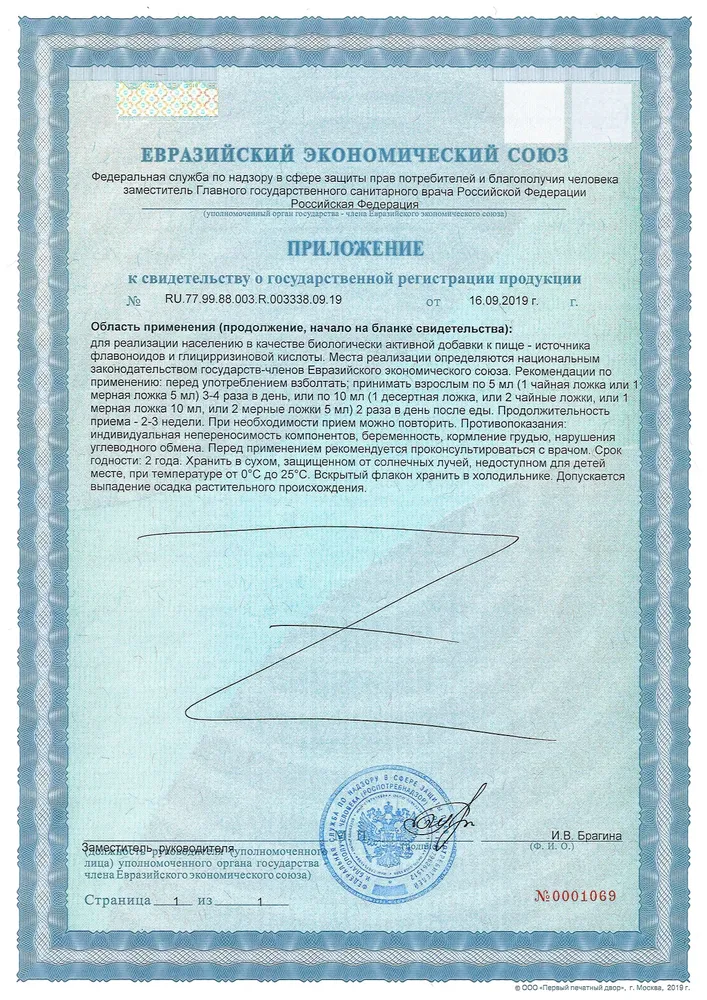 | Условия хранения | Хранить в сухом, защищенном от солнечных лучей, недоступном для детей месте, при температуре от 0°С до 25°С. Вскрытый флакон хранить в холодильнике. Допускается выпадение осадка растительного происхождения. |