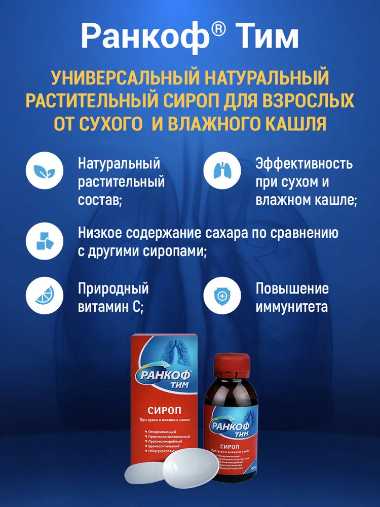 Сироп от кашля для взрослых, от простуды и гриппа, от сухого и влажного кашля, 100 мл Ранкоф Тим Аптека Асна интересное: