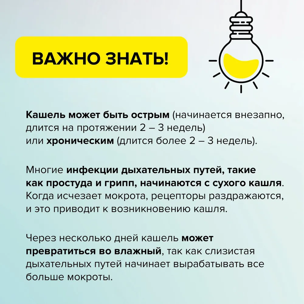 | Показания к применению | Эффективен при сухом и влажном кашле. |