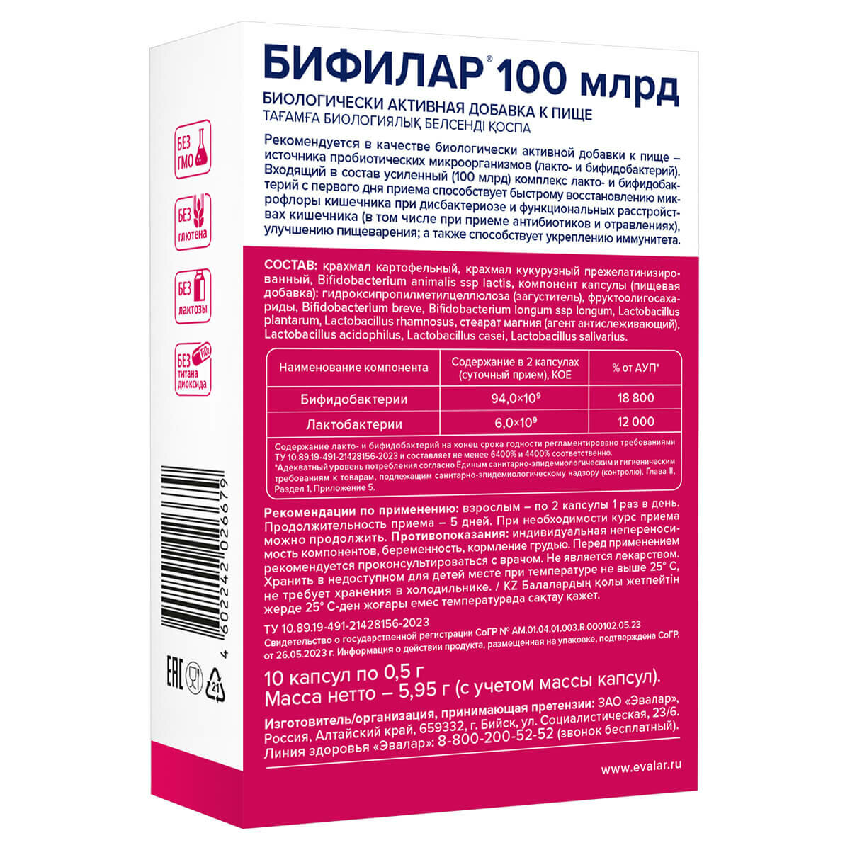 Бифилар 100 млрд, 10 капсул, Эвалар интересное: