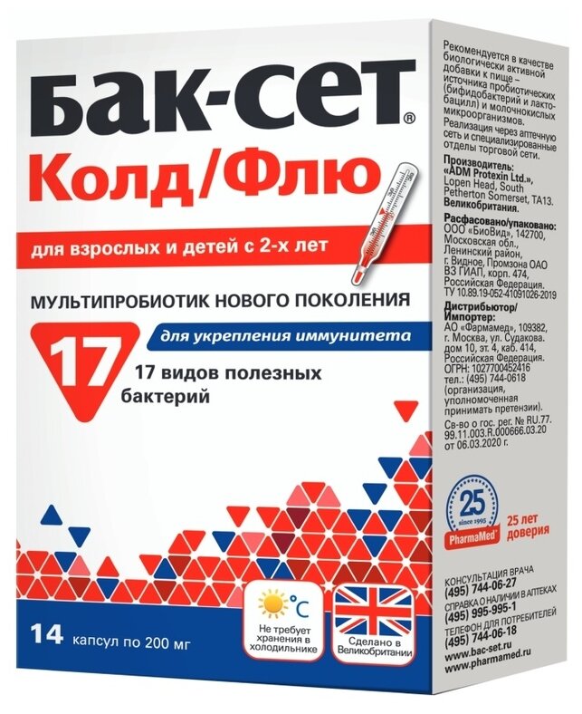Бак-Сет Колд/Флю 14капс. имунно-пробиотик дети 2+ и взрослые 3уп