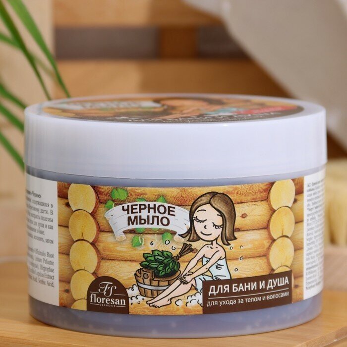 Натуральное таёжное мыло для бани и душа FLORESAN Черное, уход за телом и волосами, 450 мл