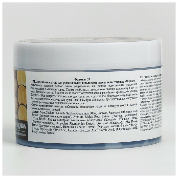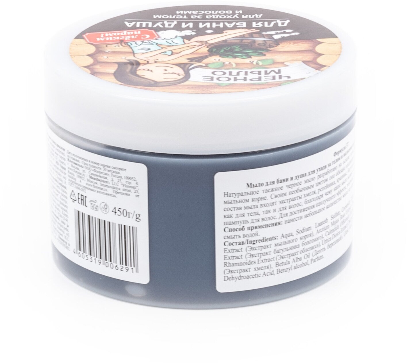 Мыло для бани и душа, для ухода за телом и волосами натуральное таежное Черное 450 мл