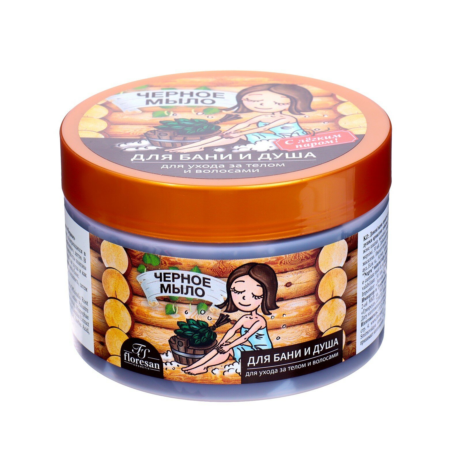 Натуральное таёжное мыло для бани и душа FLORESAN Черное, уход за телом и волосами, 450 мл
