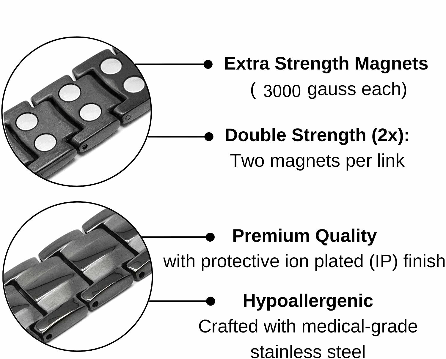 Купить Магнитный энергетический браслет от давления мужской 1,5х20 см с магнитами, германием, с отрицательными ионами / черный графит