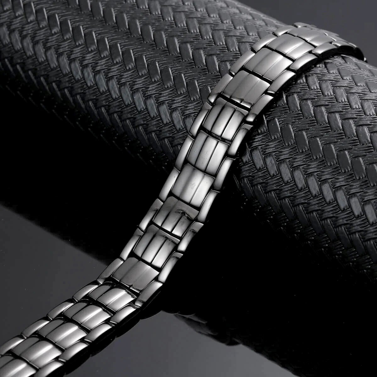 Магнитный энергетический браслет от давления мужской 1,5х20 см с магнитами, германием, с отрицательными ионами / черный графит интересное: