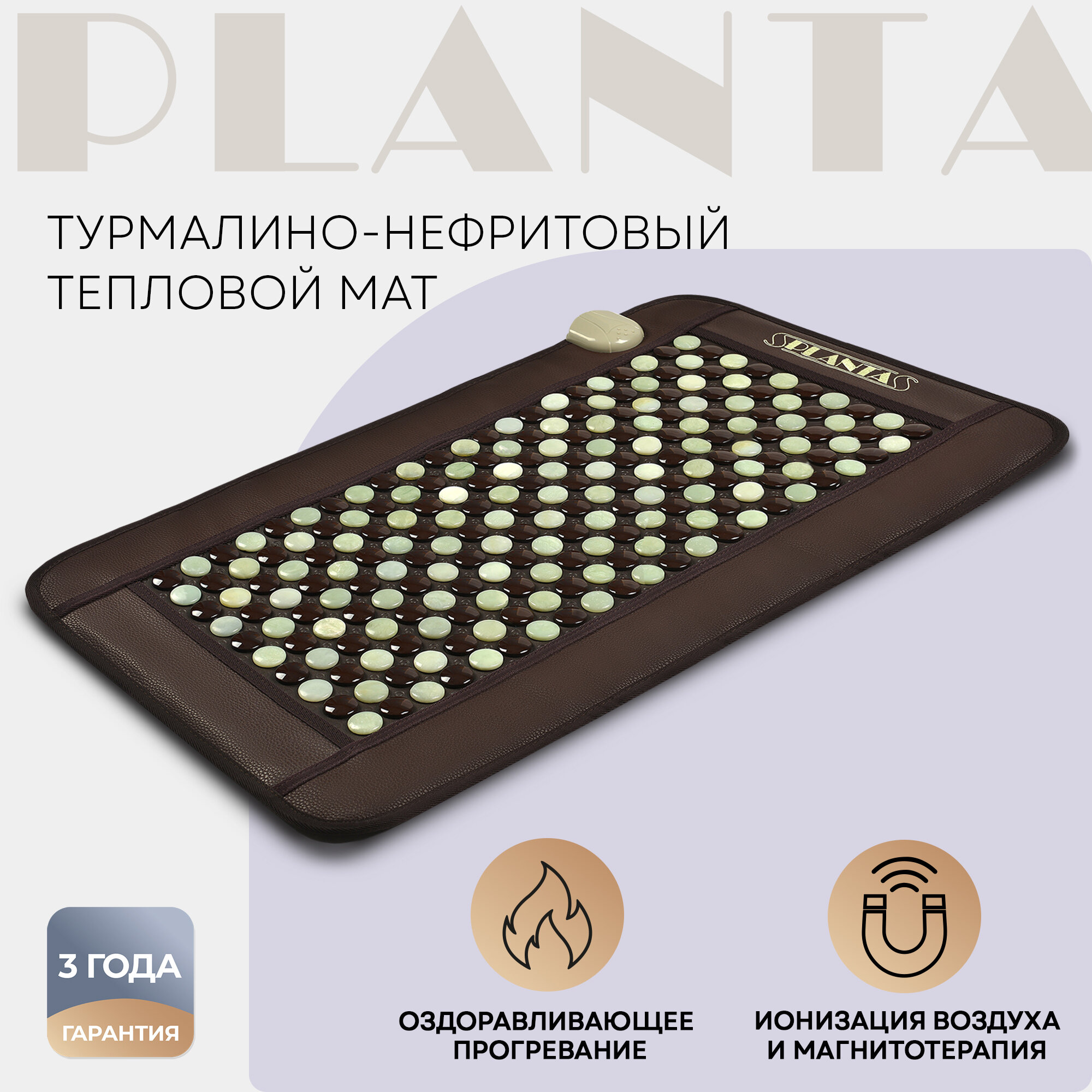 PLANTA Турмалиново-нефритовый тепловой коврик, массажер для тела PL-MAT1, 220 камней, нагрев до 70 градусов, автоотключение, переносная сумка интересное: