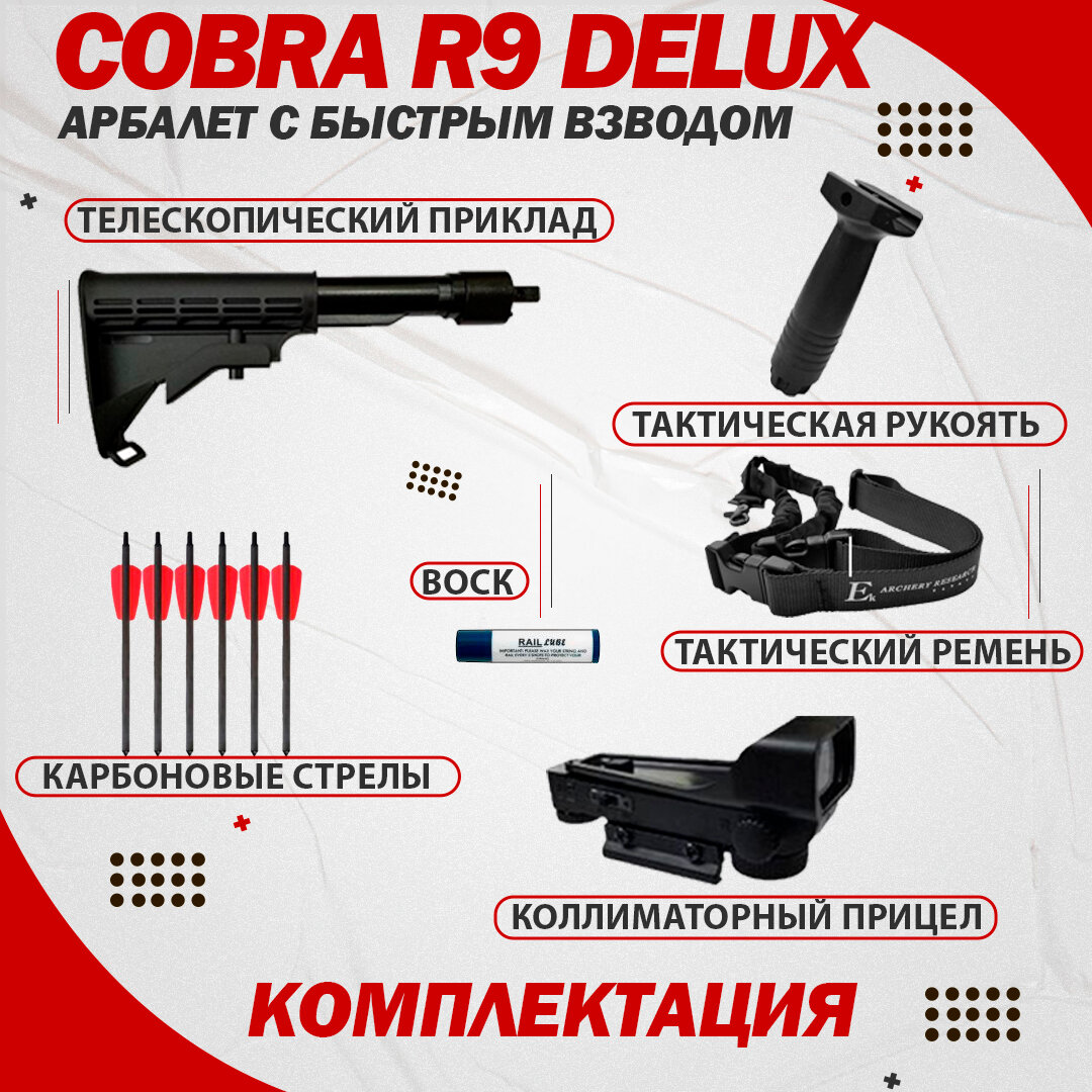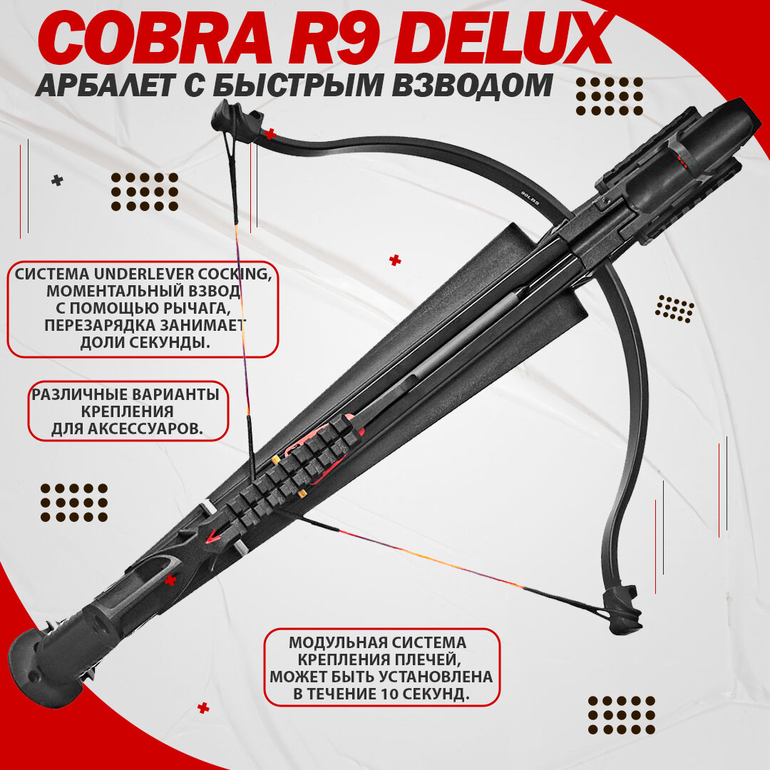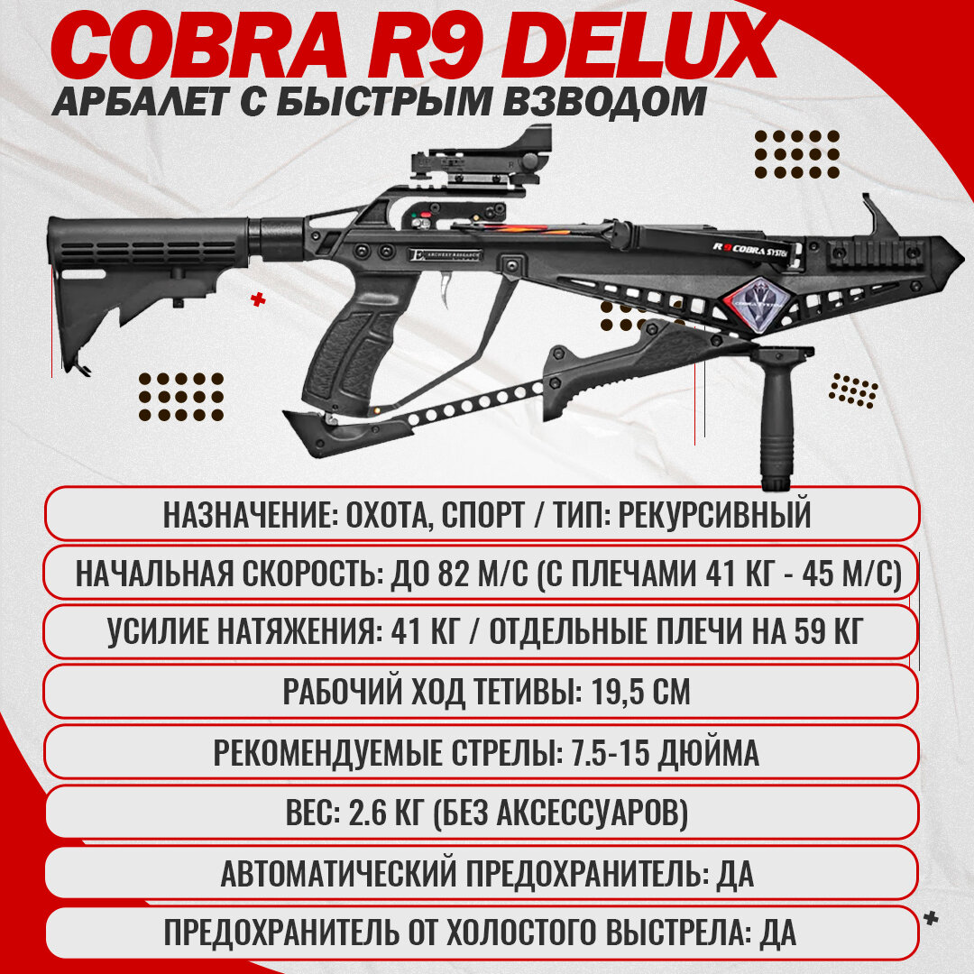 | Дополнительная информация | Арбалет Cobra System R9 оснащен четырьмя тактическими планками Picatinny. |