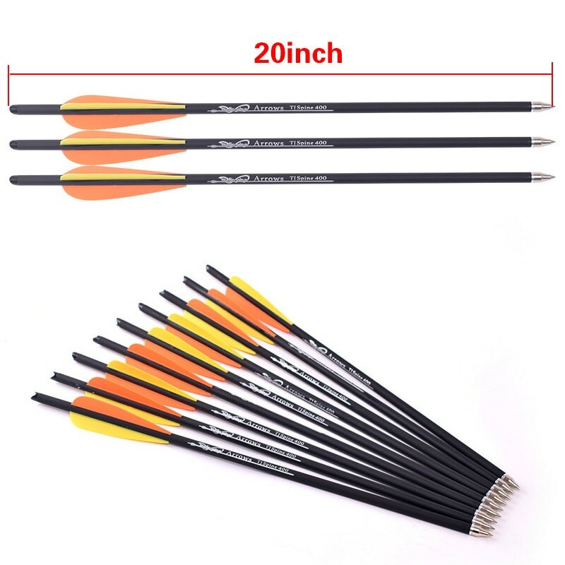 Углеродная стрела для охоты из арбалета, стрельбы из лука, оранжевое и желтое перо, колюще 400, 16 дюймов, 17 дюймов, 18 дюймов, 20 дюймов, 20inch