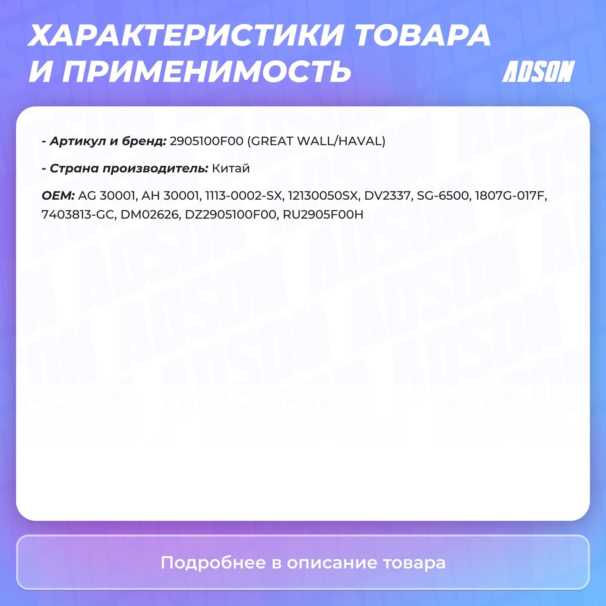 Амортизатор передний GW SAFE,DEER 4/4-20-2905030 2905100-F00, 2905100F00 Great Wall 2905100-F00 интересное: